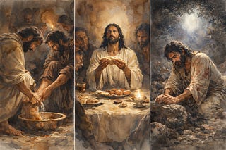 A suffering servant who washes feet, breaks bread, and sweats blood in a garden: three acts that strip power of its pretensions and reveal what it costs…