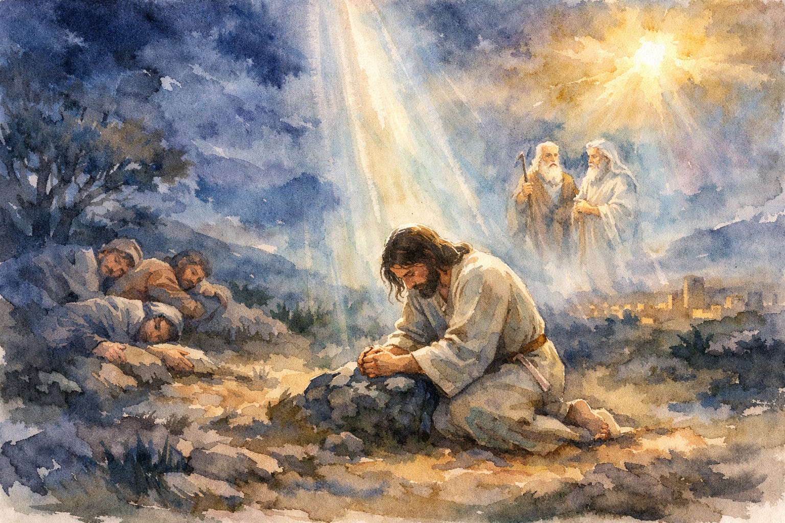 About eight days after Jesus said this, he took Peter, John and James with him and went up onto a mountain to pray. (Lk 9:28)